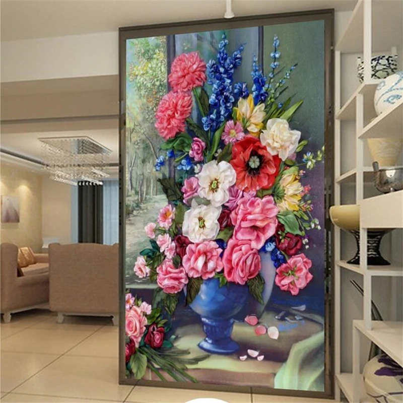 Beibehang Wallpaper Kustom Relief Bunga Suasana Estetika Bunga